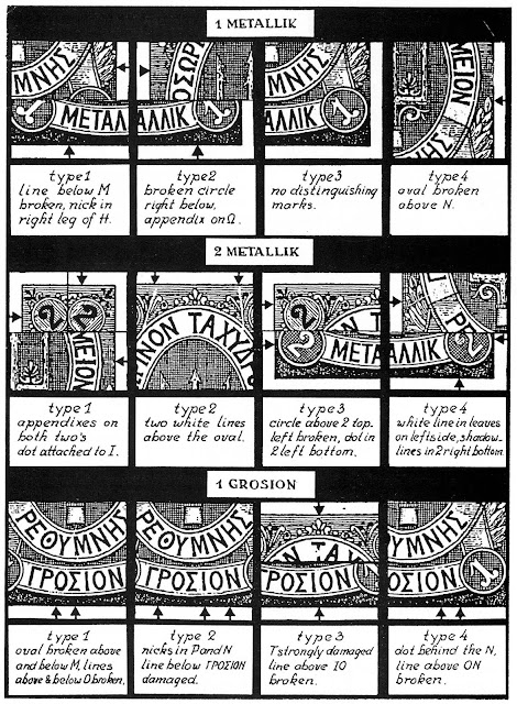 The genuine stamps come in 4 types for each value so plating them is relatively easy. The forgeries cannot be plated
