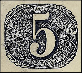 There is an excellent fake of the 5c red Petersburg, Va in existence. This fake is almost indistinguishable from the genuine stamp. One of the differences is in the appearance of the numeral "5." Compare the "5's" in the genuine and the fake stamp below. The "5" in the fake stamp on the right is italicized. But an easier way to tell the difference is to look at "PETERSBURG" and "VIRGINIA." In the fake, the lettering of both words is the same size. In the genuine, "PETERSBURG" is about 30% larger than "VIRGINIA."